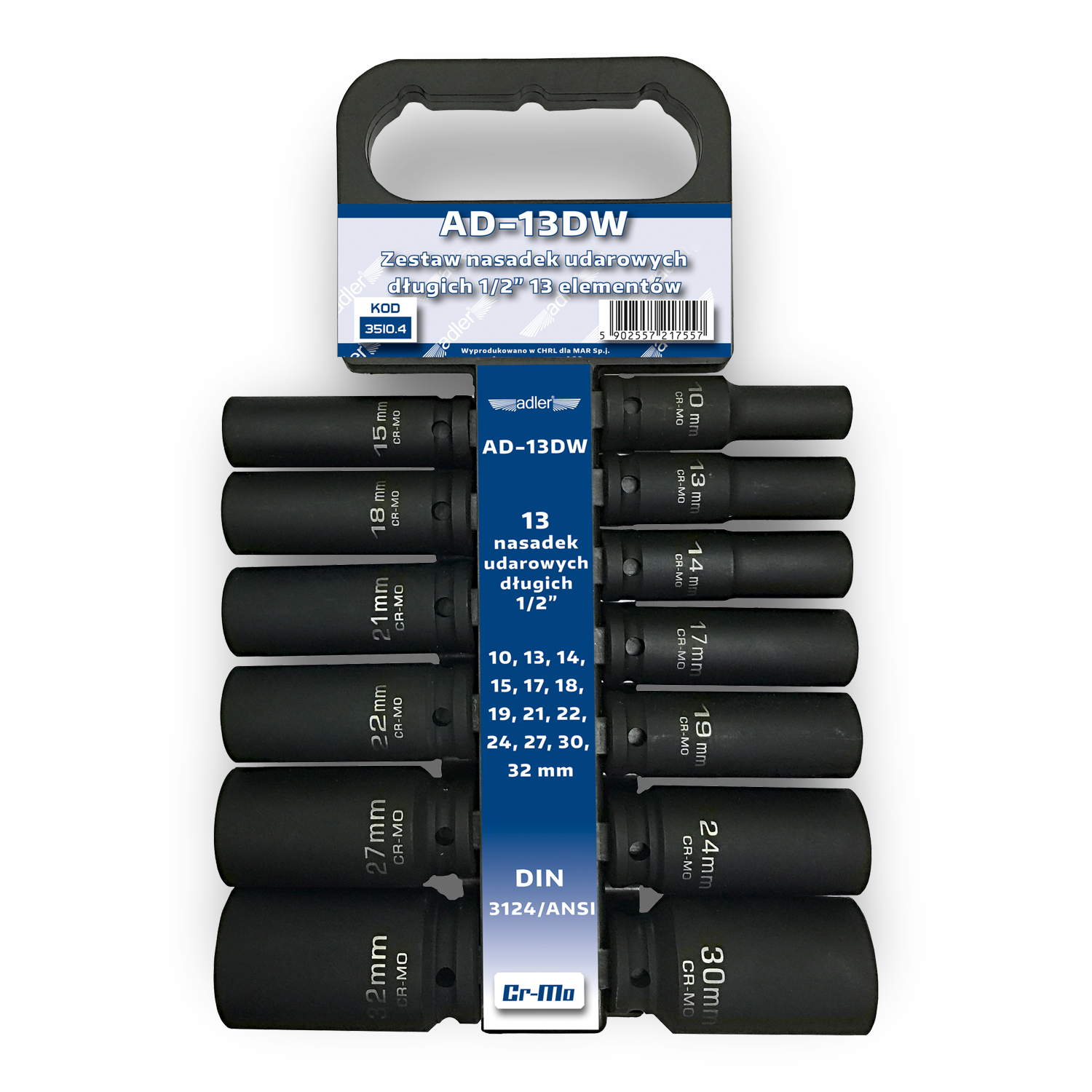 Zestaw - Nasadki udarowe długie Cr-Mo 1/2" 13szt wieszak AD-13DW